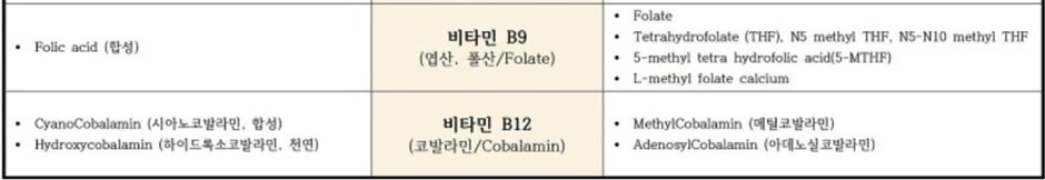 ◈비타민B군 충분섭취량